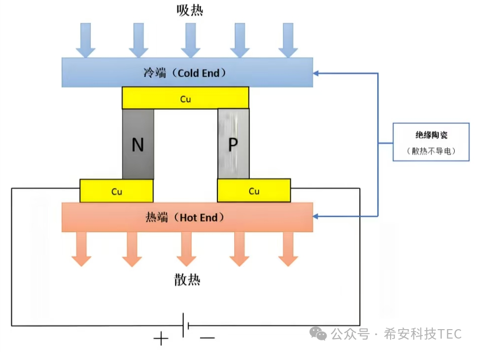 R : Lorsque le courant traverse un circuit composé de deux conducteurs ou semi-conducteurs différents, une absorption ou une libération de chaleur se produira au point de contact des deux matériaux en raison des directions différentes du courant. Il s'agit d'un processus de conversion électrothermique et du processus inverse de l'effet Seebeck.